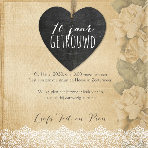 Uitnodigingskaart 10 Jaar Huwelijk