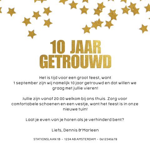 Uitnodiging 10 Jaar Getrouwd Met Gouden Sterren