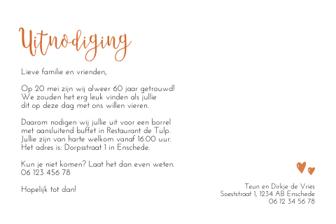 Uitnodiging 60 Jaar Getrouwd Kaart