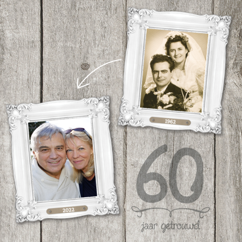 Uitnodiging 60 Jaar Getrouwd Jubileumkaart Hout Fotos