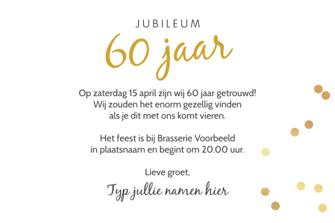 60 Jaar Getrouwd Uitnodiging Met Goud Confetti En Handlettering
