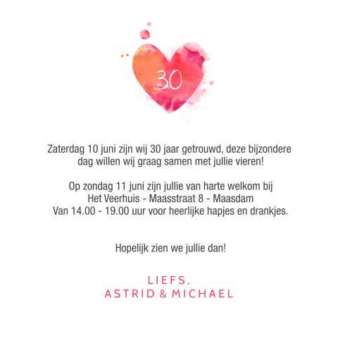 Uitnodiging 30 Jaar Getrouwd Met Roze Aquarel Hart