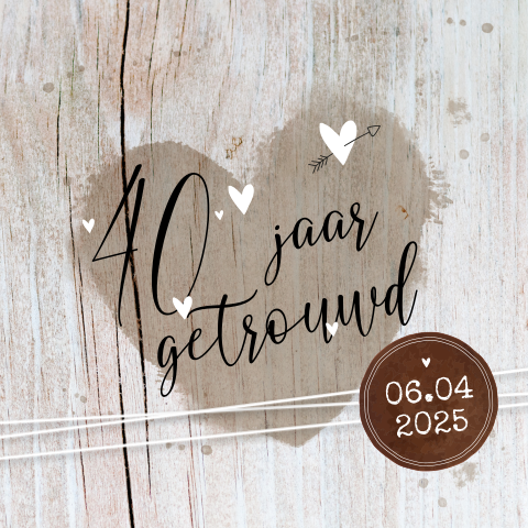 Stoere Jubileum Uitnodiging 40 Jaar Met Hart Op Houten Achtergrond
