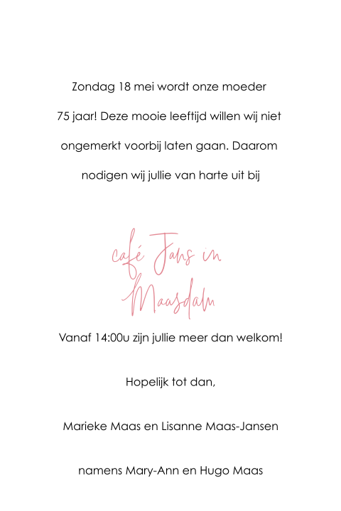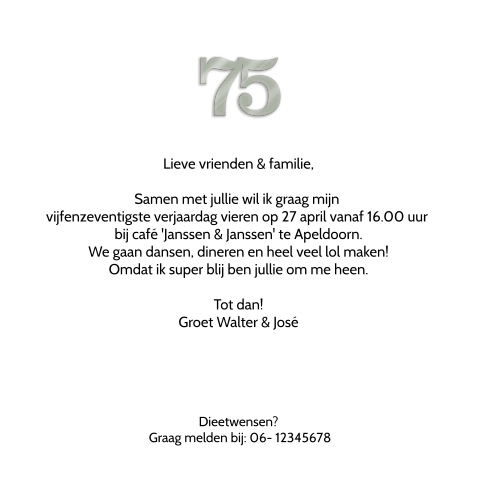 Tekst Uitnodiging Verjaardag 75 Jaar