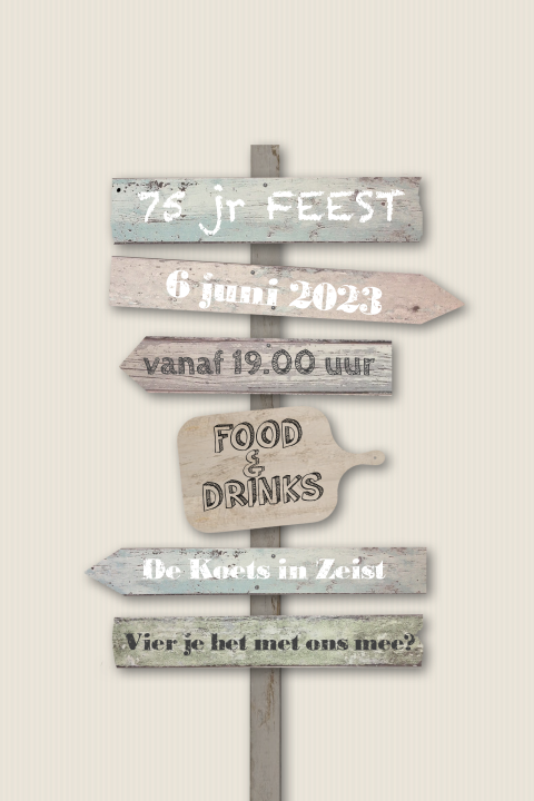Uitnodiging Verjaardag 75 Jaar Feest Met Houten Borden