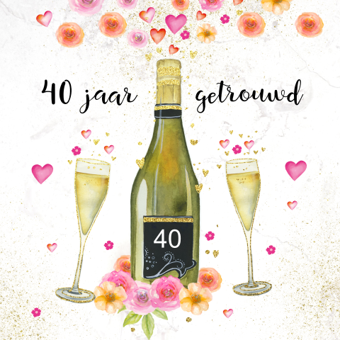 Hippe Uitnodiging 40 Jarig Huwelijksjubileum Met Champagne En Bloemen