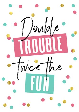 Verjaardagskaart Tweeling Double Trouble Twice Kaartje2go