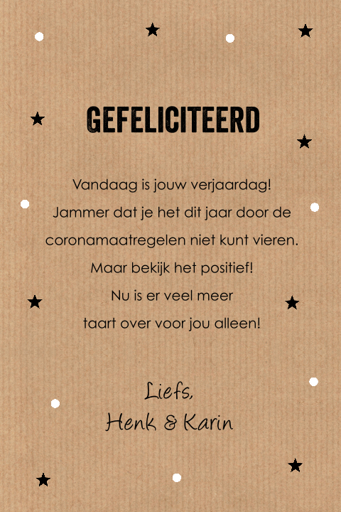 Verjaardag Dikke Papieren Knuffel Corona Kaartje2go