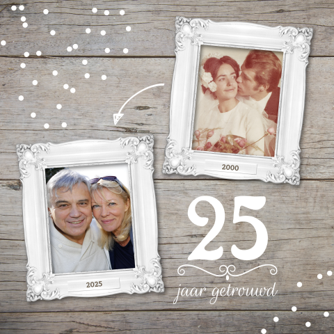 Stoere Uitnodiging 25 Jarig Huwelijk Met Foto S Op Houten Achtergrond