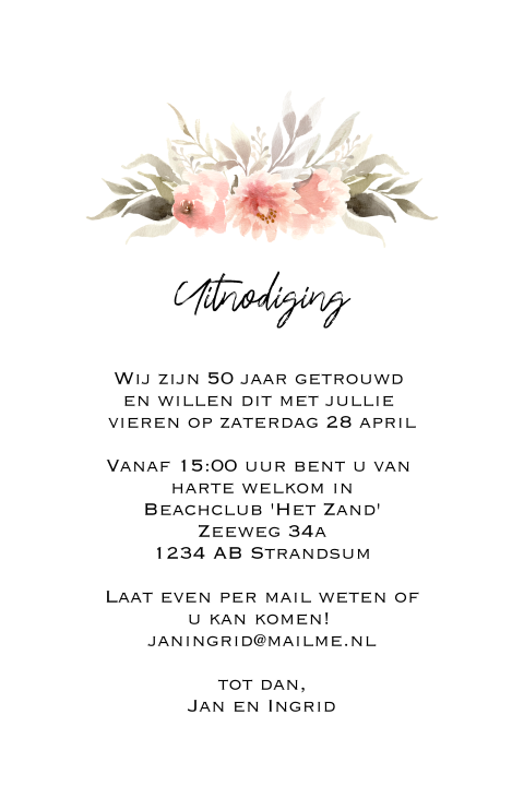 Romantische Uitnodiging 50 Jaar Getrouwd Bloemen