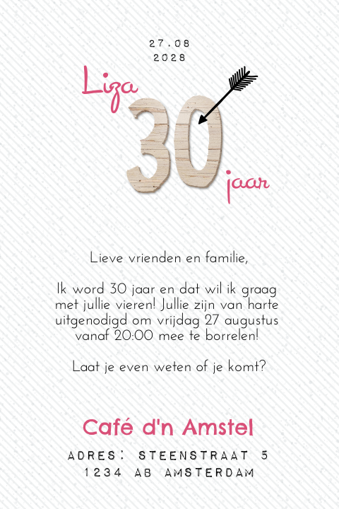 Uitnodiging 30 Jaar Verjaardag Met Roze En Hout