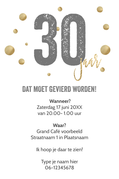Hippe Uitnodiging Verjaardag 30 Jaar Gouden Kaartje2go