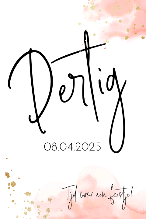 Uitnodiging 30 Jaar Verjaardag Met Watercolor En Gouden Letters