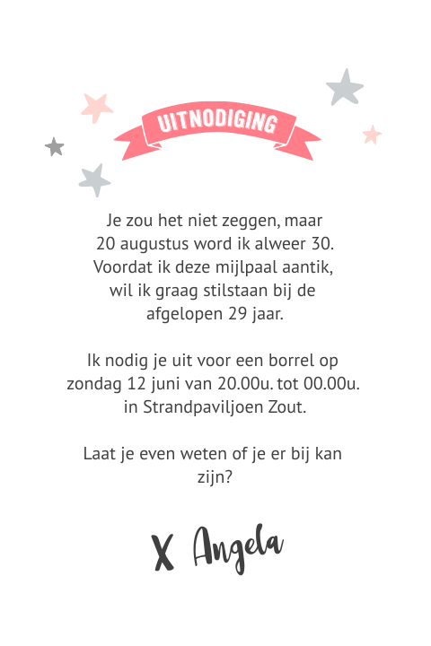 Let op dat je een foto in hoge resolutie uploadt en de tekst goed te lezen is. Uitnodiging verjaardag 30 jaar met foto. Dat kan door samen met je ouders of.