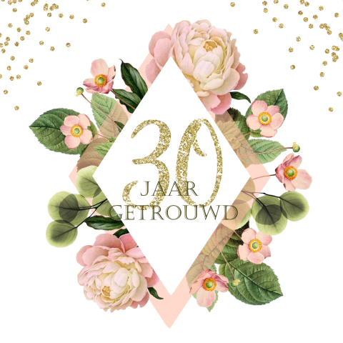Uitnodiging Jubileum 30 Jaar Getrouwd Bloemen En Gouden Glitters